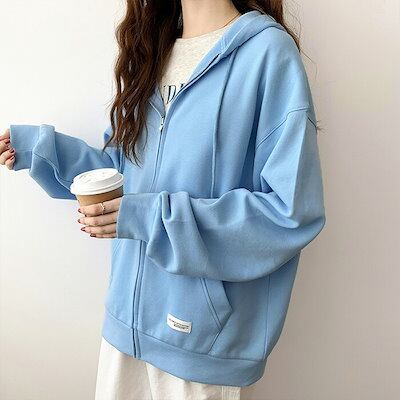 ジップパーカー レディース 秋 冬 ゆったり トップス 長袖 秋冬 カジュアル おしゃれ 大きいサイズ 韓国風 レディース フード付き 6色展開 ジャケット ジップアップパーカー