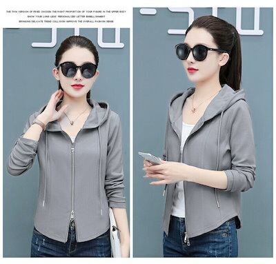 パーカー レディース 薄手 秋 春 細身 フード付き アウター ゴルフウェア ファスナー 長袖 フード ジップアップ スウェット 薄手 無地 大人 おしゃれ カジュアル ダブルジップ グレー ピンク