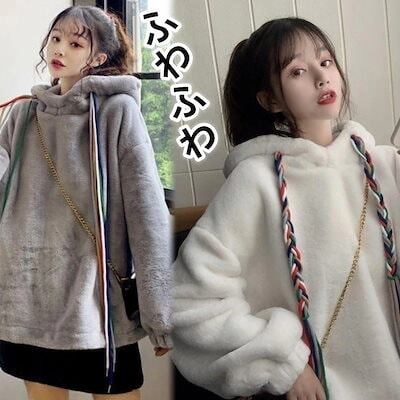 裏起毛ファッション パ一力一 今週は25%オフふわふわ 秋冬パーカー可愛い 韓国ファッション フード付き 体型カバー 保温性 トップス 秋アウター 可愛いパーカー レディース
