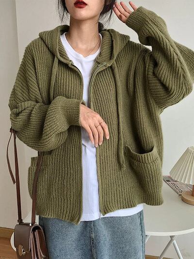 超人気パーカーニットセーターとのデザイン感長袖肩出し衛衣レディースファッション新型ニットセジャージ-@パーカー