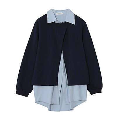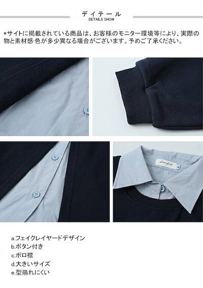 パーカー シャツ レディース フェイクレイヤード 長袖 ポロ襟 プルオーバー カジュアル トップス アウター プルオーバー ボタン 体型カバー レイヤード感 薄手 シンプル 無地 ゆったり 快適 着回