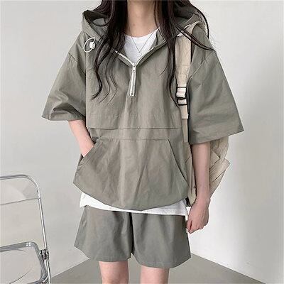 韓国ファッション カジュアル 半袖 Tシャツ 2点セット ファッション スウェットパンツ フード付き トレーナー レディースパーカー