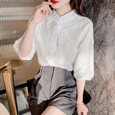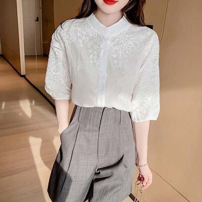刺繍 ブラウス シャツ レディース 半袖 バルーン袖レディースファッション トップス シャツ