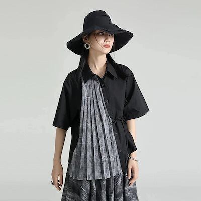 暗黒風百掛け半袖シャツレディース上着韓国半袖ブラウスコントラストカラー