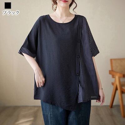 Tシャツ レディース アシンメトリー異素材Tシャツ 大人 40代 ブランド かわいい 夏 ゆったり ロング スポーツ トレーナー Vネック ブラウス 人気 ジム 涼しい おしゃれ 7分袖 ティーシャツ