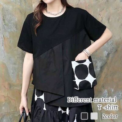 Tシャツ レディース 異素材Tシャツ 大人 40代 ブランド かわいい 夏 ゆったり ロング スポーツ トレーナー Vネック ブラウス 人気 ジム 涼しい おしゃれ 7分袖 ティーシャツ 5分袖 半袖