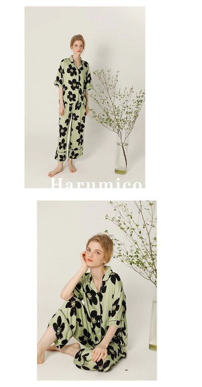 パジャマ レディース 花柄 コットン半袖長袖襟を折るウェア セットアップ トップス 前開き ボトムス ロングパンツ 長ズボン 部屋着 寝間着 寝巻き 冷房対応 パジャマセット 産後姫系
