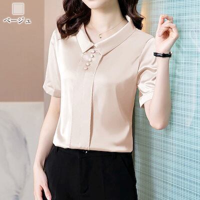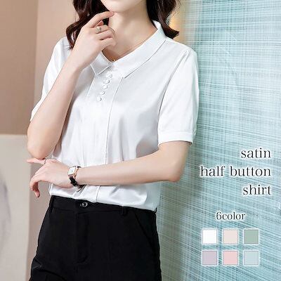 シャツ レディース サテンハーフボタンシャツ 形態安定 おしゃれ 夏 事務服 春 シャツブラウス 白 半袖 トップス スポーツ Tシャツ 麻 ブラウス しわになりにくい カジュアル かわいい ゆったり