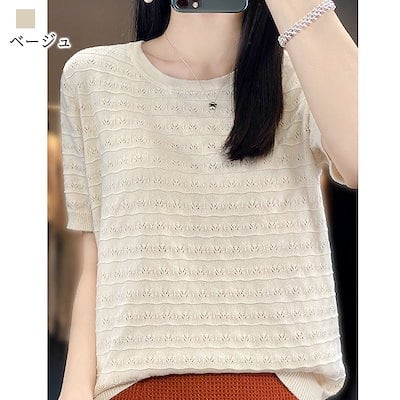 Tシャツ レディース ラウンドネックニットTシャツ ジム コーデ 夏 人気 春 おしゃれ カジュアル ブラウス 薄手 ブランド 大人 シャツ ブラック トレーナー ゆったり Vネック スポーツ 40代