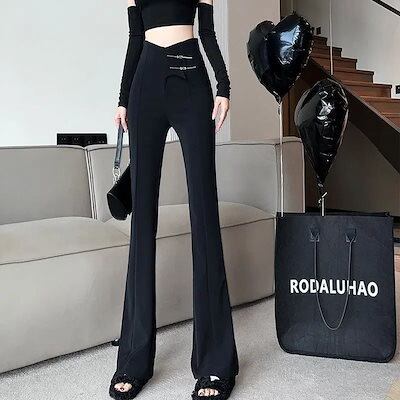 デザイン感 トレンド 大きいサイズ レディース セクシーフレアパンツ ハイウエスト 裏起毛 ロングズボン 百掛け