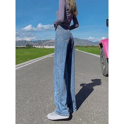 デニムパンツ ワイドパンツ ズボン ボトムス 着痩せ ハイウェスト ワイドパンツ ジーンズ ゆったり デニムパンツ レディース フレアパンツ
