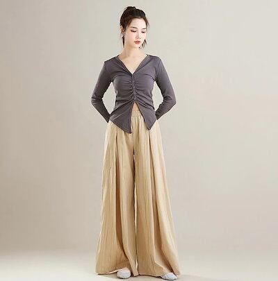 ワイドパンツ レディース ガウチョパンツ フレアパンツ ロング パンツ 体型カバー 大きいサイズ ロング丈 夏 着痩せ 無地 おしゃれ ゆったり カジュアル ウエストゴム 美脚 脚長効果 きれいめ