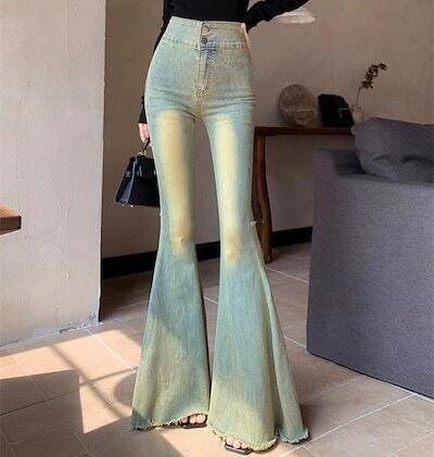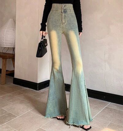 デニムパンツ ジーンズ gパン ロングパンツ ワイドパンツ フレアパンツ ハイウエスト ストレッチ ボトムス レディース 春 秋 冬 レトロ カットオフデニム セクシー カジュアル ファッション