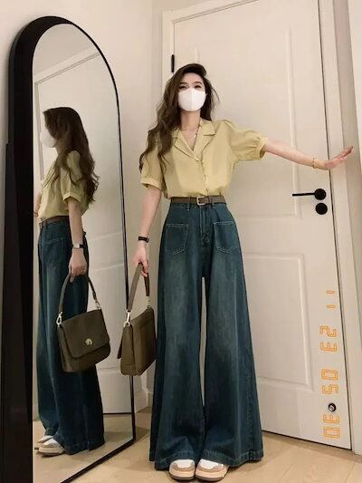 脚長効果!スキニーデニムパンツ デニムボトムス レディース フレアーパンツ ハイウエスト ワイドパンツ ストレート 美脚 美尻 カジュアル ジーンズ