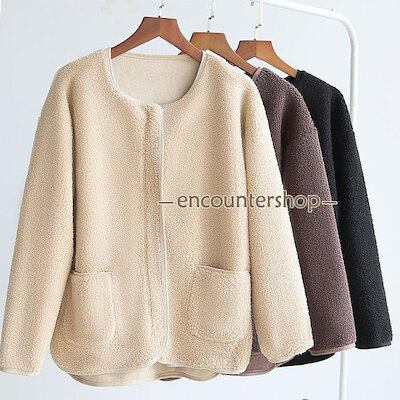 ブルゾン 秋新作 秋冬 ノーカラー ボア 大きいサイズ アウター レディース もこもこ ボアブルゾン 羽織り