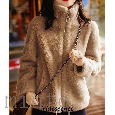 ジャンパー ボア ブルゾン ボアジャケット レディース 女性 アウター 前開き フロントジッパー ファスナー 秋冬 暖かい あったか 無地 単色 シン