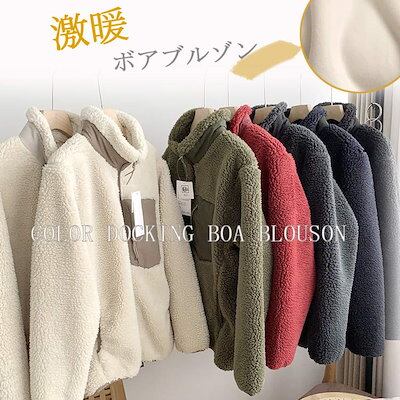ボアブルゾン女の子服異素材切り替えボアブルゾンレディース秋冬ふわふわ暖かいボアジャケットグレーユニセックスもこもこアウター冬ショート丈ハイネックボリューム袖ショート丈ブルゾン防寒軽量ボアコートあったか