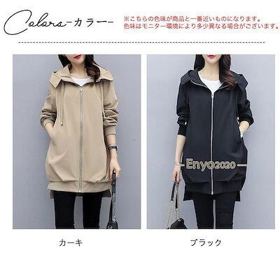 マウンテンパーカー レディース トレンチコート ミディアム丈 ウィンドブレーカー ファスナー 裹地無し フード付き ジャケット 羽織 アウター 春秋 ゆったり