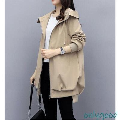 トレンチコート レディース マウンテンパーカー ミディアム丈 ウィンドブレーカー ファスナー 裹地あり フード付き ジャケット 羽織 アウター 春秋 ゆったり