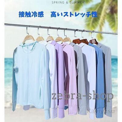 UVカットパーカー ラッシュガード 接触冷感 マウンテン ひんやり レディース メンズ クールパーカー 羽織 指穴付 農作業 涼しい 吸汗速乾