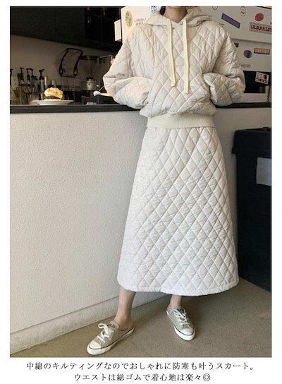 新作入荷 キルティング セットアップ レディース キルティング パーカー スカート 2点セット 中綿 キルト プルオーバー フード付き 秋 冬 服 中綿パーカー 中綿スカート 大人可愛い カジュアル
