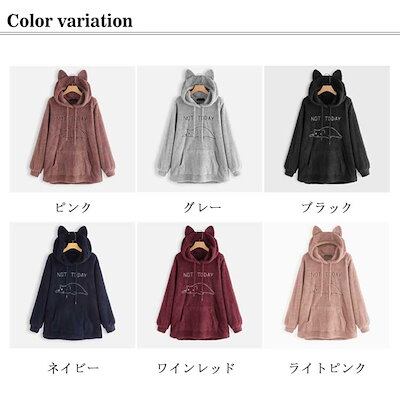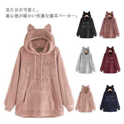 超人気 高評価!!ボアパーカー 服 ゆるパーカー M-5XL レディース プルオーバー フード付き 大きいサイズ 猫刺繍 もこもこ 可愛い 服 中学生 猫耳