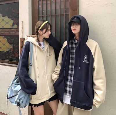 2着セット ペア カップル パーカー 韓国 ペアルック パーカー 小熊 裏起毛なし 薄手 秋冬春 ジップパーカー ペアお揃い カーデ 派手 恋人 夫婦 レディース メンズ ファション 記念日 写真撮り
