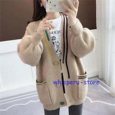 レディース トップス カーディガン ニット 秋 長袖 ピンク イエロー レッド ベージュ ラクダ色 ライトニット ゆったり カジュアル ファッション 通勤 普段着