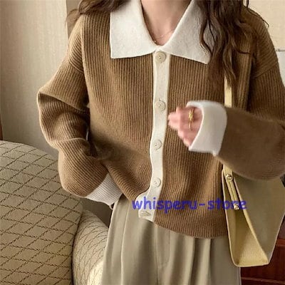 レディース トップス カーディガン ニット 秋 長袖 ベージュ コーヒー ライトニット ゆったり カジュアル ファッション 通勤 普段着