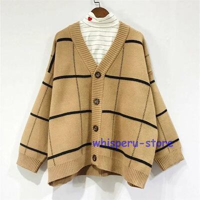 レディース トップス カーディガン ニット 秋 長袖 カーキ あんずいろ ライトニット ゆったり カジュアル ファッション 通勤 普段着