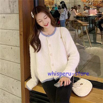 レディース トップス カーディガン ニット 秋 長袖 ブルー ホワイト ピンク ライトニット ゆったり カジュアル ファッション 通勤 普段着