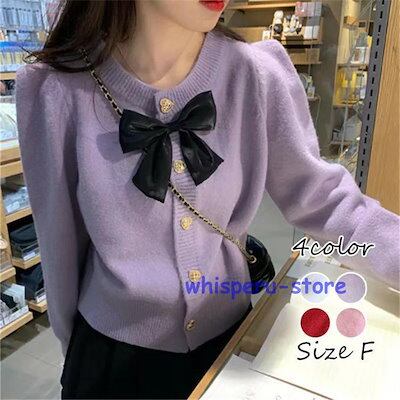 レディース トップス カーディガン ニット 秋 長袖 パープル レッド ピンク ホワイト ライトニット ゆったり カジュアル ファッション 通勤 普段着