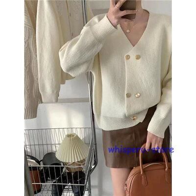 レディース トップス カーディガン ニット 秋 長袖 ブラック ブルー レッド ホワイト グレー ライトニット ゆったり カジュアル ファッション 通勤 普段着