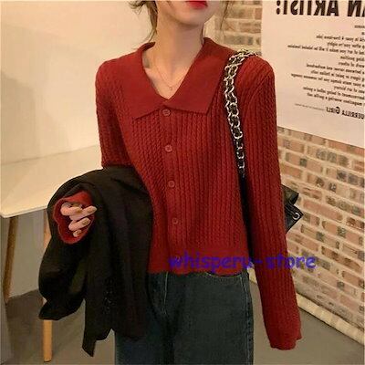 レディース トップス カーディガン ニット 秋 長袖 レッド ベージュ あんずいろ ライトニット ゆったり カジュアル ファッション 通勤 普段着