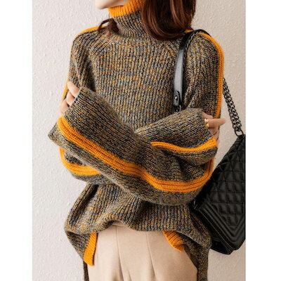 ニットセーターレディース 新作 長袖ニットトップス 配色 ックセーター ゆったりニットソー