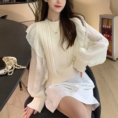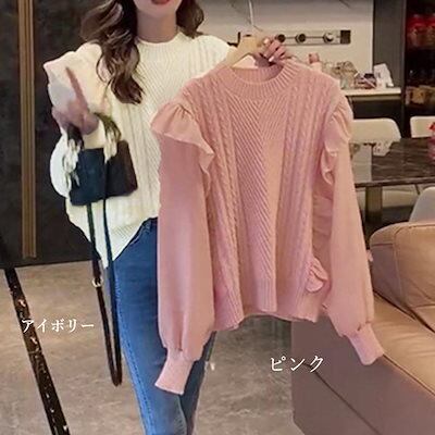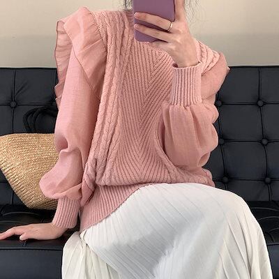 フリルニットトップス レディース 韓国風