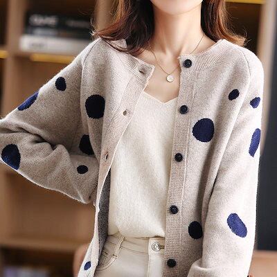 新色追加!! 大人カジュアル ボタン ドット柄 カーディガン レディース