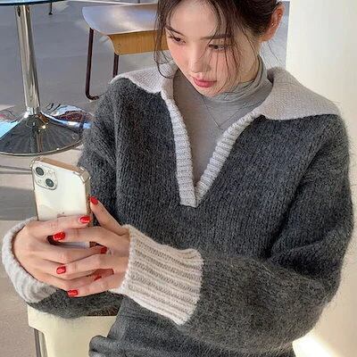 ニットセーターオーバー長袖セーターレディース春秋新作デザイン感インパクトカラーレトロショート丈ニット今日は30パーセント