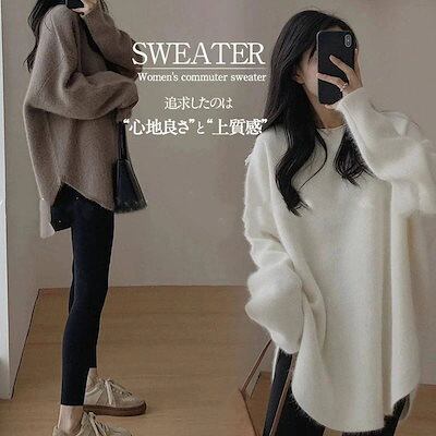 ニットレディースセーターニットセーター長袖秋冬クルーネックゆったりトップス暖かい柔らかい着痩せきれいめインナー可愛いシンプル今日は30パーセント