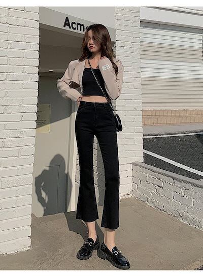 デニムパンツ フレアーパンツ 九分丈パンツ ストレート ワイドパンツ ゆったり ?力 ハイウェスト 着痩せ ロングズボン