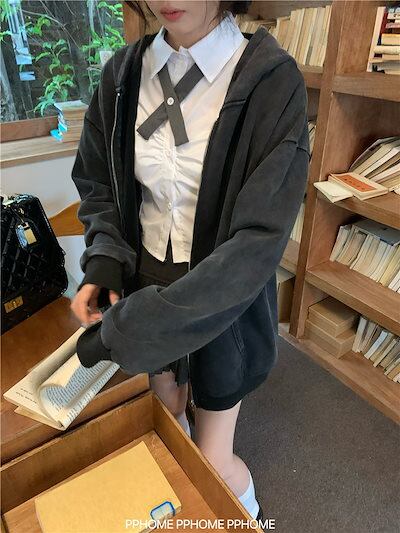 2024 秋冬 韓国 かわいい レディース 裹起毛 フード付きフーディーブルゾン羽織り加工長袖シルエットトップスコーデ冬カジュアルファッション系サイズフル丈トラック女子ルーズアウターに合うスウェット