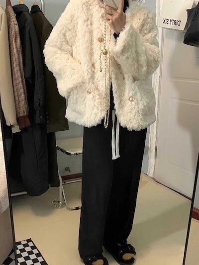 冬アウター 韓国ファッション ラムファーコートレディース秋冬新作ゆったり白トップス ジャケット ジャケット