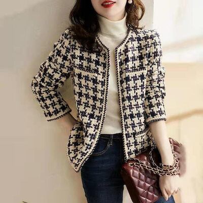 2024 レディースファッション 秋 ジャケット アウター ダウンジャケット!!ファッションコート 初 名媛気質ツイードトップス痩せ見え女神範 冬服