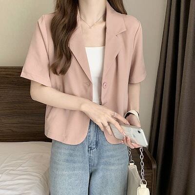 冬アウター 韓国ファッション新作 夏服 tシャツ 半袖 レディース トップス ショット丈 スーツジャケット tシャツ 通勤OL ゆったり カジュアル Tシャツ