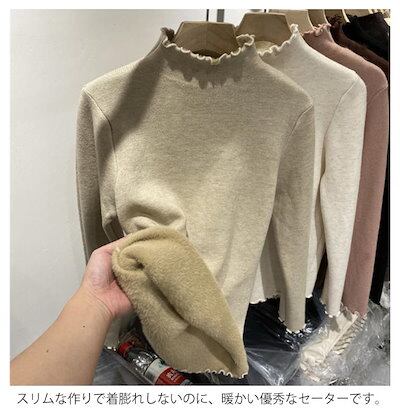【2枚購入で 2oo円OFF!】秋 冬 裏起毛 ニットセーター保温 暖かい 上質 リブ ニット トップス レディース タイト シルエット ストレッチ カットソー 無地 秋冬 トップス
