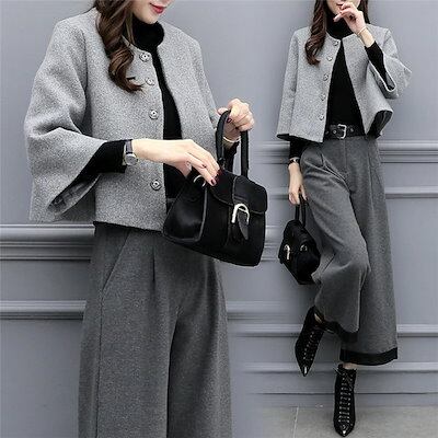 セットアップ パンツスーツ 2点セット ジャケット ガウチョパンツ ワイドパンツ フォーマルスーツ ゆったり レディース ラシャ 長袖 無地 フォーマル 入学式 卒業式 おしゃれ 大人 通勤 OL 秋