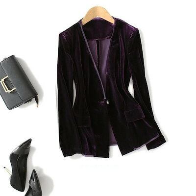 ジャケット レディース 冬 ベロア ベロアジャケット オフィス テーラード テーラードジャケット 長袖 ライトアウター 体型カバー フォーマル スーツ 黒 ブラック 通勤 OL お呼ばれ ビジネス お