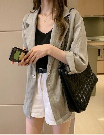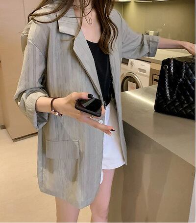 テーラードジャケット レディース 切り替え フォーマル ジャケット スーツ ストライプ コート トップス 着回し力 紫外線対策 UVカット 着痩せ 体型カバー シンプル カジュアル おしゃれ 春夏