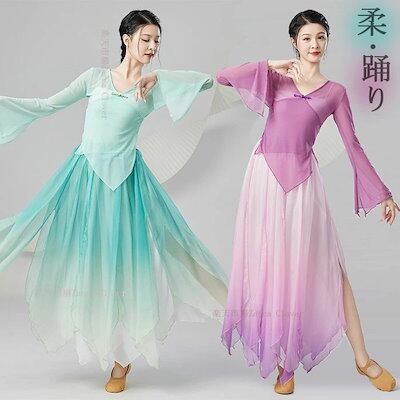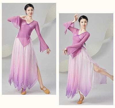 ダンス衣装 長袖 メッシュ トップス ロング丈 シフォン ガウチョパンツ ワイド パンツ フレアスカート 美しい グラデーション ふんわり シフォン パンツ ダンス レッスン着 レディース 大人 ダン