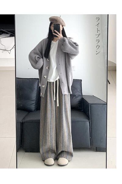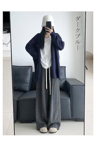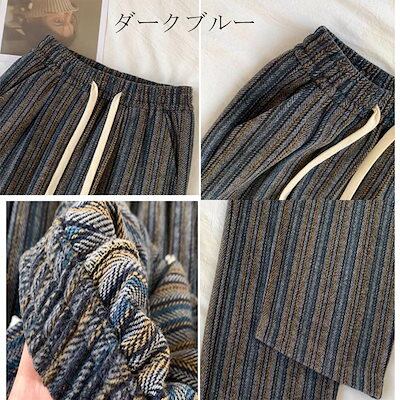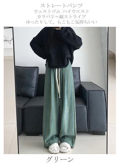 ストレートパンツ ワイドパンツ レディース カラバリ裏起毛 ストライプ ウェストゴム 体型カバー パンツ ボトムス ゆったり イージーパンツ フレアパンツ ハイウェスト もこもこ ロング ロングパンツ